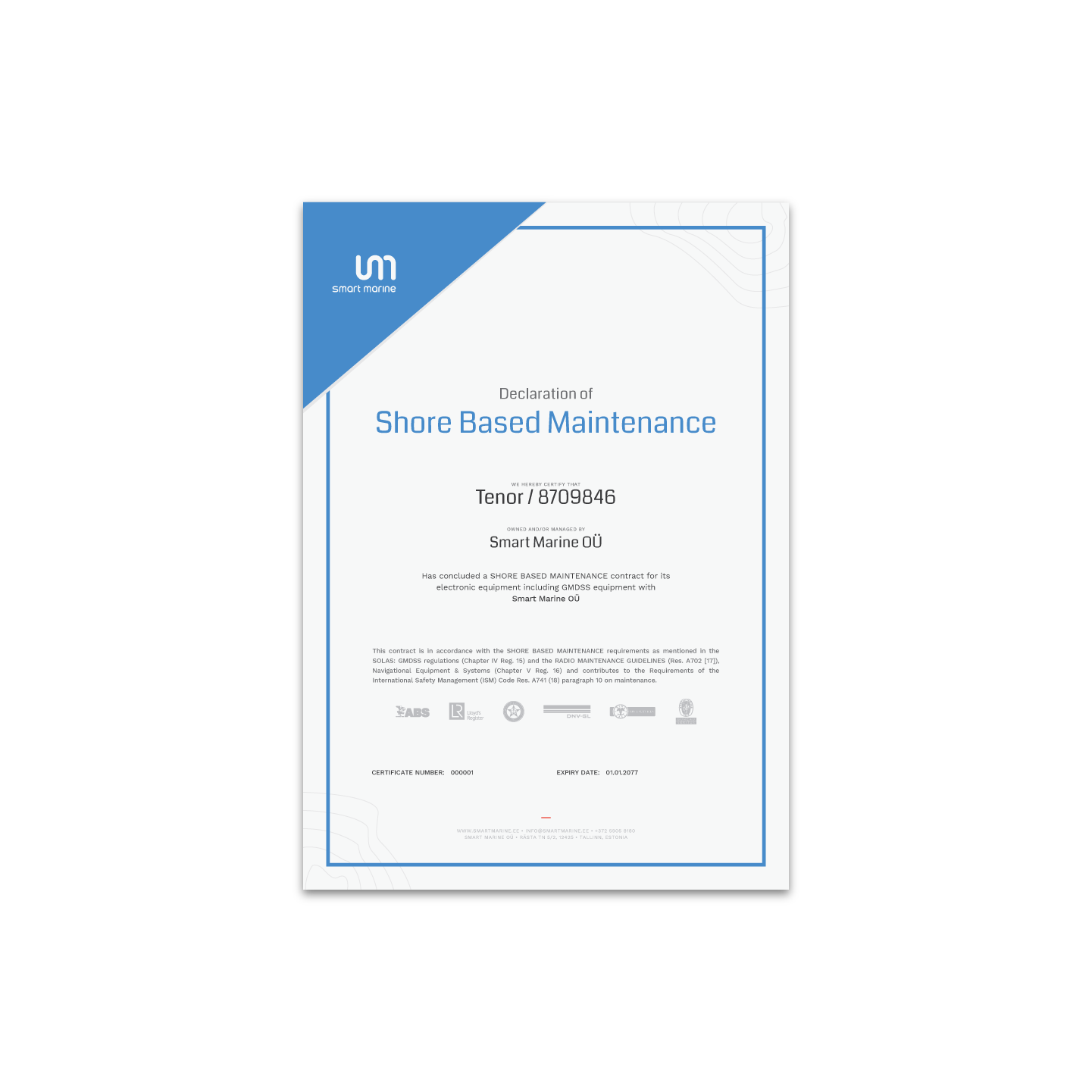 Laevaomanik, kes otsib ühte teenusepakkujat, kes on suuteline pakkuma terviklahendusi ning konsultatsiooni laevade navigatsiooni- ja raadioseadmete hooldusele ning ennetamisele.